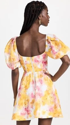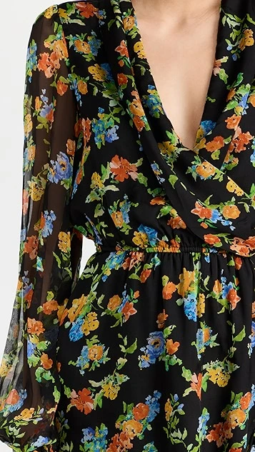 - Ruffled trim and floral print