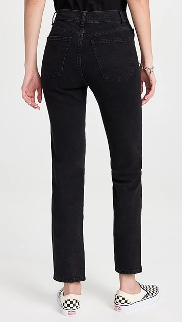 - High-rise and straight-leg cut