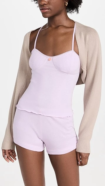 Ideal for warm-weather slumbers, these Free People pajama shorts are crafted from soft, lightweight jersey, and are imbued with a lovely light-purple hue.