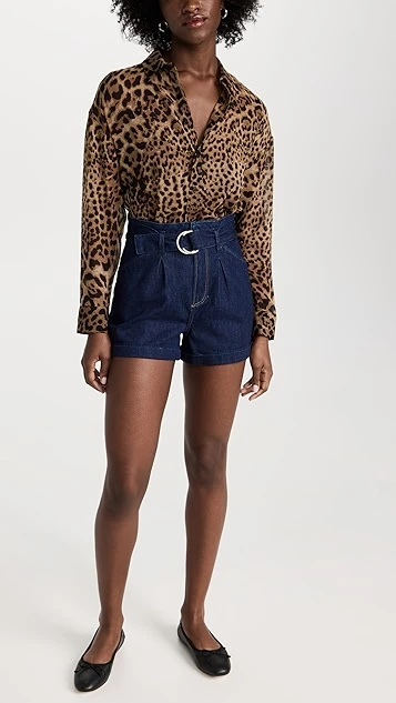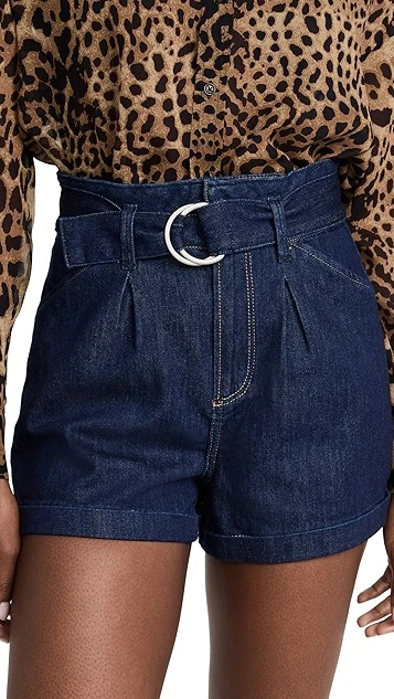 More polished than your usual jean shorts, these PAIGE denim shorts feature an unblemished, dark-blue wash, and are accented with a waist-accentuating buckle belt.
