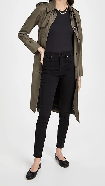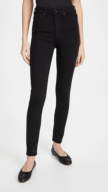 Rag & Bone/JEAN skinny jeans make creating laid-back looks a breeze. The high-waisted pair feels particularly sleek thanks to unblemished black denim.